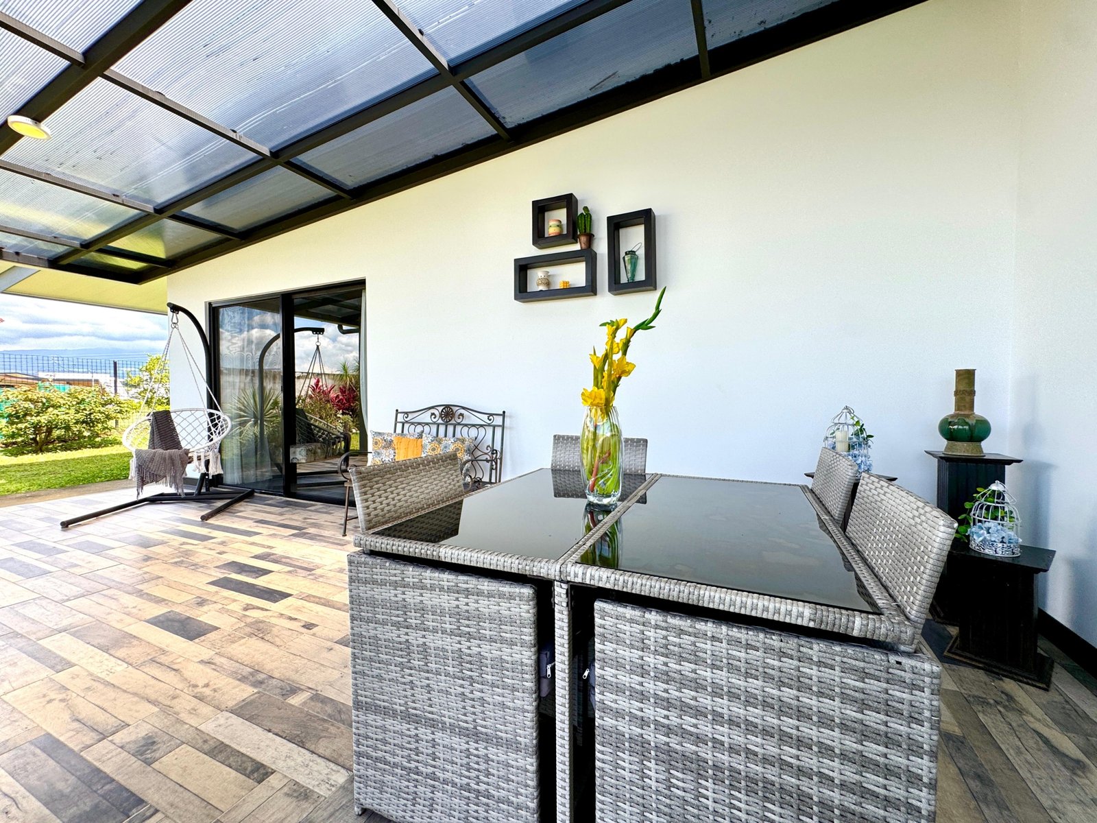 • A beautiful covered terrace that wraps around the home, connecting seamlessly with the large backyard through sliding glass doors from both the kitchen and the master bedroom